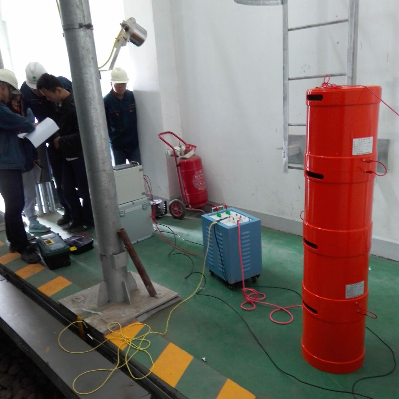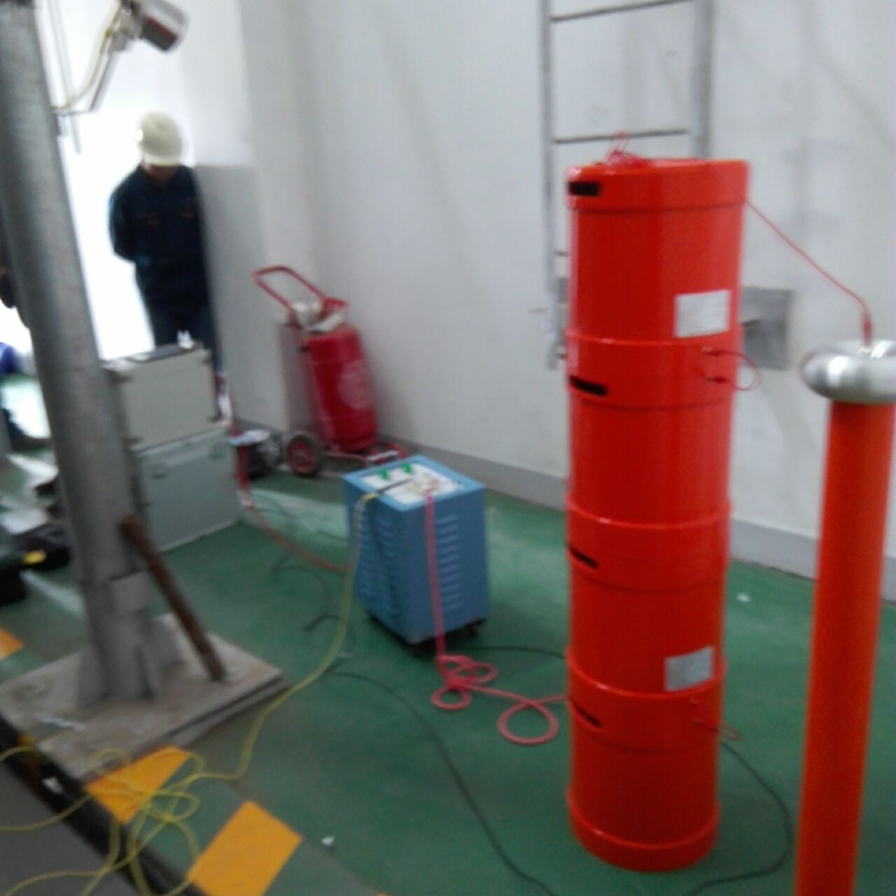 此次培訓(xùn)的主要設(shè)備是我公司的優(yōu)質(zhì)產(chǎn)品:YTC850-108/108變頻串聯(lián)諧振試驗(yàn)裝置,該裝置主要針對(duì)10kV、35kV電纜, 35kV及以下電壓等級(jí)開(kāi)關(guān)、GIS、互感器、斷路器等變電站設(shè)備的交流耐壓試驗(yàn)設(shè)計(jì)制造。設(shè)備所需電源容量大大減小。串聯(lián)諧振電源是利用諧振電抗器和被試品電容諧振產(chǎn)生高電壓和大電流的,在整個(gè)系統(tǒng)中,電源只需要提供系統(tǒng)中有功消耗的部分。設(shè)備的重量和體積大大減少,改善輸出電壓的波形。防止大的短路電流燒傷故障點(diǎn)等優(yōu)質(zhì)特點(diǎn)。