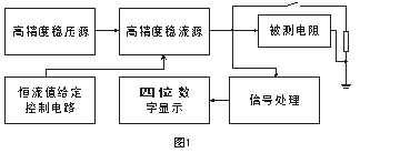 其中穩(wěn)壓源是高精度低紋波電源,可提供10A的電流輸出。穩(wěn)流源輸出的電流受其分擋切換控制電路的控制。當(dāng)測(cè)量選擇不同擋位時(shí),輸出不同的穩(wěn)定電流。當(dāng)恒流電流通過(guò)被測(cè)電阻時(shí)在被測(cè)電阻上產(chǎn)生穩(wěn)定的電壓信號(hào),該信號(hào)經(jīng)計(jì)算機(jī)處理后由液晶顯示器直接顯示電阻值。