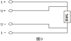 U+、I+為一套接線夾子,U-、I-為另一套接線夾子,接線時必須將U+夾在I+的內側,U-夾在I-的內側。線徑大的為電流,線徑小的為電壓