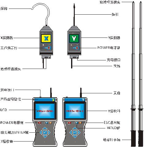 無線高壓核相儀,應用于電力線路、變電所的相位校驗和相序校驗,具有核相測相序特點、驗電等功能具備很強的抗干擾性,符合( EMC )標準要求,適應各種電磁場干擾場合。將被測高電壓相位信號由采集器取出,經過處理后直接發射出去。由核相儀接收并進行相位比較,對核相后的結果定性。因本儀器是無線傳輸,真正達到安全可靠、快速準確,適應各種核相場合。儀天成電力設備有限公司推出的YTC6220A無線高壓衛星授時遠程核相器具有GPS定位功能。下圖為基本機構詳情圖。