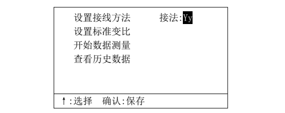 此時(shí) 按“ ↑ ” 鍵選擇接法,按“確認(rèn)” 鍵保存接法,返回主菜單