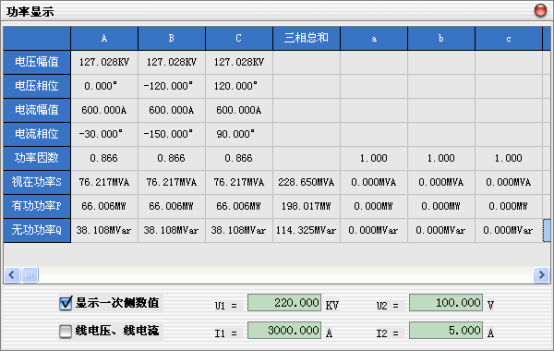 1、顯示一次側數值:根據輸入的高壓側電壓U1、高壓側電流I1、低壓側電壓U2、低壓側電流I2的數值,在進行校表的時候,軟件自動把電壓、電流、功率換算成一次側的電壓、電流、功率,便于與表計相對照。