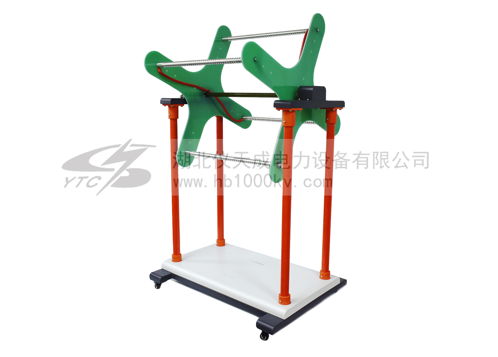 本公司生產的絕緣繩耐壓試驗支架是依據中華人民共和國國家發展改革委員會發布的中華人民共和國電力行業標準DL/T976-2015《帶電作業工具、裝置和設備預防性試驗規程》的要求基礎上研制而成,產品各項指標均符合國標要求。對大地采用高耐壓絕緣桿作為支撐。試驗電級板采用高強耐高壓復合絕緣板材,此板材具有防潮、防火、高耐壓重復性好等特性。