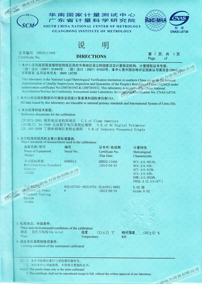 轉載:"YTC2220鉗型相位伏安表的資質證書" 請注明來源于儀天成電力。 更多技術問題請致電儀天成電力客戶服務:027-87876585,技術部專線:027-87876585,在線客服:719388481